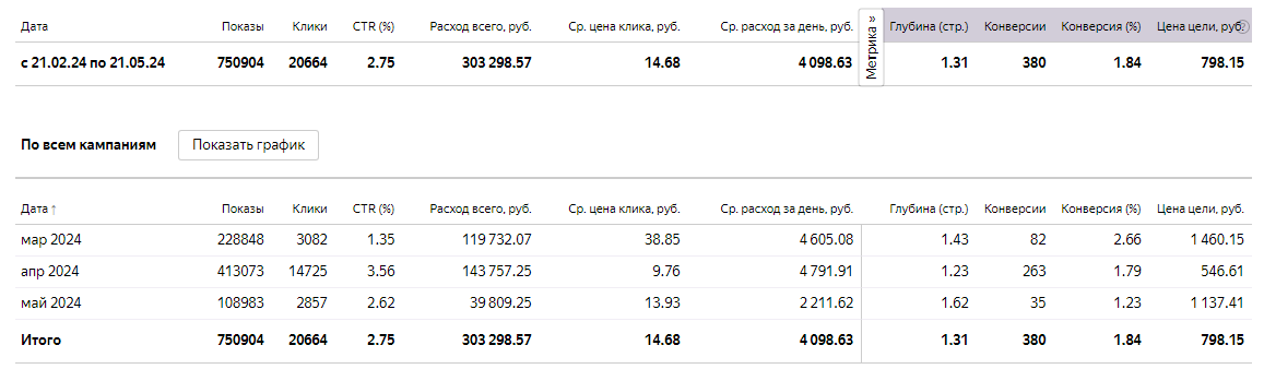 В целом реклама была неплохо настроена. Не идеально, но и не катастрофа. Были цифры, которые можно улучшить, но это не объясняло главную проблему — дорогие заявки.
