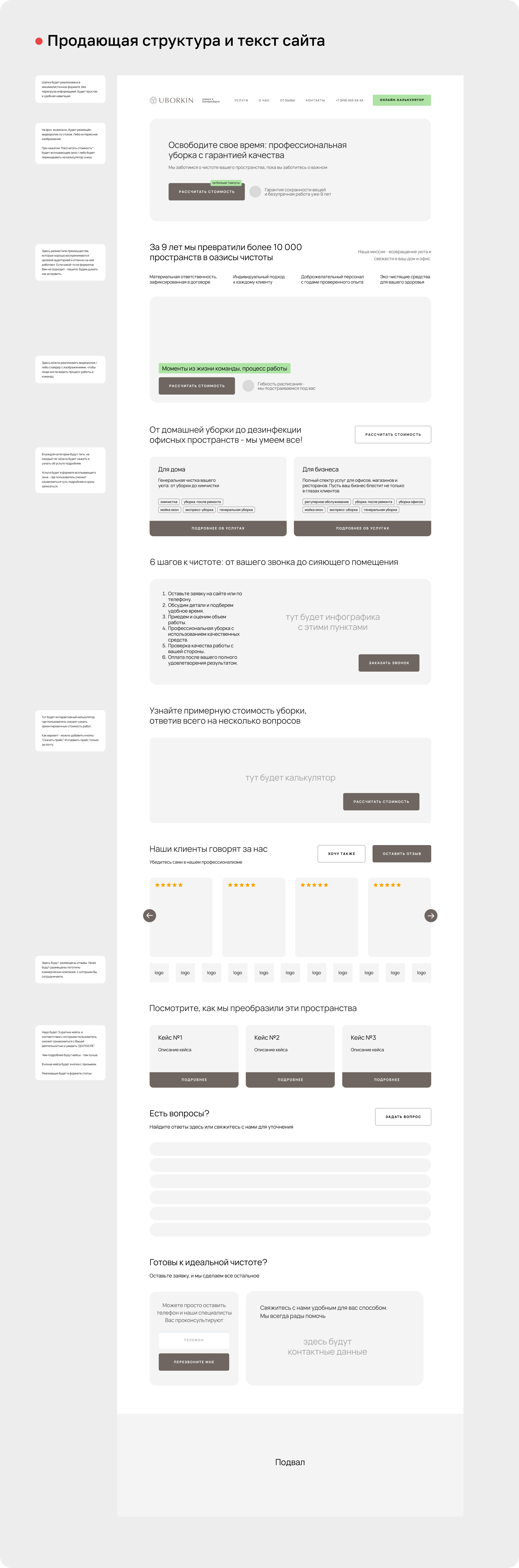 Начните с главной и страницы услуг. Добавьте боли клиентов, триггеры, конкретику.